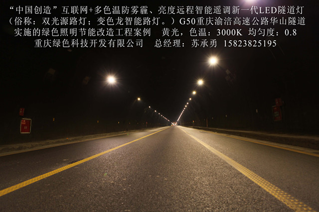 50 years ago, the United States Ge Corp developed the world's first red LED, opened the history of LED. A few years ago, Internet plus color temperature, brightness adjustable anti fog haze remote manufacturing technology of a new generation of LED intelligent lighting applications (hereinafter referred to as: the technology) in the national high-tech enterprises in Chongqing science and Technology Development Co., Ltd. green fruit. The birth of this technology is a revolution in the manufacturing history of LED intelligent street lamps in the world. It fills the gap of the city's street lamp "multi-color temperature" and intelligent lighting. The technology is the strategic emerging industries, in line with the central "innovation driven development strategy" and "supply side structural reform, in the field of street lighting will replace ordinary monochromatic temperature LED lamp manufacturing technology backward. This technology includes intelligent controller, intelligent terminal, anti fog and haze of color temperature adjustable brightness controller, color temperature, brightness and anti fog haze remote intelligent remote control LED intelligent street lamp "and" intelligent hardware and software programming, automatic induction PM2.5, temperature, humidity, voltage, current, video etc. a new generation of intelligent sensing technology application technology, compatible with other lights intelligent remote control system. The patent technology "Internet plus multi color LED lights, tunnel lights and six remote control system (ZL201520493805.4)" by the science and technology novelty has won the "novelty search report" (No: J201508016831), that is "China creation" advanced technology the one and only LED lamp application of intelligent manufacturing technology; it has been included in the "2015 year of science and technology results the SMEs of Chongqing city transformation project" (small enterprises in Yuzhong 2015 No. 188), approved the establishment of Chongqing City Engineering Research Center [LED Intelligent Control Technology Chongqing 2015 technology development and reform 1865]; has been included in the "2016 annual Chongqing City Technology innovation project," guidance "in 2016 Chongqing city Internet plus pilot the demonstration project". The technology also includes time, preset, time and automatic remote control and other control modes. Based on the ordinary monochromatic temperature LED street lamp control system, using the technology of the Internet, 4G mobile communication through wireless communication, wireless remote intelligent control system, centralized controller from server to issue orders for the interconnection mutual information centralized controller log kilometers each terminal controller, always single lamp color temperature and brightness. Anti fog and haze remote monitoring and alarm functions. This technology has four major characteristics: (a) by PM2.5 sensor, temperature sensor, ultrasonic sensor, radar remote camera automatic acquisition of environmental protection, meteorology, transportation, security and other information, analyze the information sharing and data services through the cloud platform. (two) in different climate and season, according to the change of climate and environmental sensory needs people, through the temperature sensor, humidity sensor, PM2.5 sensor, intelligent remote control to achieve a variety of lighting lamps, color temperature, improve the human sensory comfort. Chongqing City Cai Yuan Road Yuzhong district as an example, automatic acquisition of temperature, rain, fog and haze data of the year by the remote intelligent control system, intelligent lighting will be adjusted to the most comfortable and safe lighting color temperature (3000K-5700K). (three) the brightness of light can be remotely intelligently adjusted. G50 Chongqing Chongqing Fuling Expressway in Tieshan, Huashan, Huang Caoshan, Ping Village, concentric Fort Temple tunnel lighting as an example, in different periods of light adjustment for a variety of lighting mode, including "daytime mode", "night mode", "summer mode" and "winter mode" and "anti haze mode", which greatly improve the saving rate, and effectively solve the tunnel lighting for saving electricity is widely used in the control loops closed or interval caused by lighting dark area lights, traffic safety problems. (four) the important parameters such as luminance uniformity, illuminance uniformity and energy saving rate are all better than the national standard of LED street lamps. This new generation of LED intelligent street lamp, a lamp can be used when more than one ordinary monochromatic temperature LED street lamp, the cost performance is higher, can improve the light efficiency of 10%, and prolong the service life of lamps more than doubled. Intelligent color matching and dimming, more comfortable and energy-saving. In September 2013, the Chongqing Municipal People's government support, this product has been in Chongqing District of Yuzhong City lawn Yuanjiagang tunnel, eling tunnel, Jiulongpo chenjiaping tunnel under the application of the technology. Chongqing City Lighting Management Bureau and Jiulongpo District of Chongqing City Street Management Office of tunnel engineering test on lawn Yuanjiagang, compared with the corresponding replacement of the original lamp, energy saving rate of 70.5%. The use of this technology in two years time, Chongqing Academy of Metrology and quality inspection in accordance with the "city road lighting design standards" CJJ45-2006 "and" GB/T5700-2008< > lighting measurement method for testing, the results meet the standard, and the technical indicators are better than ordinary monochromatic temperature LED lamp. The technology in the G50 of Chongqing Chongqing Fuling Expressway in Tieshan, Huashan, Huang Caoshan, Ping Village, concentric Fort Temple tunnel; Jiulongpo Shi Xin Lu, Shiping bridge tunnel; Yuzhong Caiyan; Nan'an District longhua