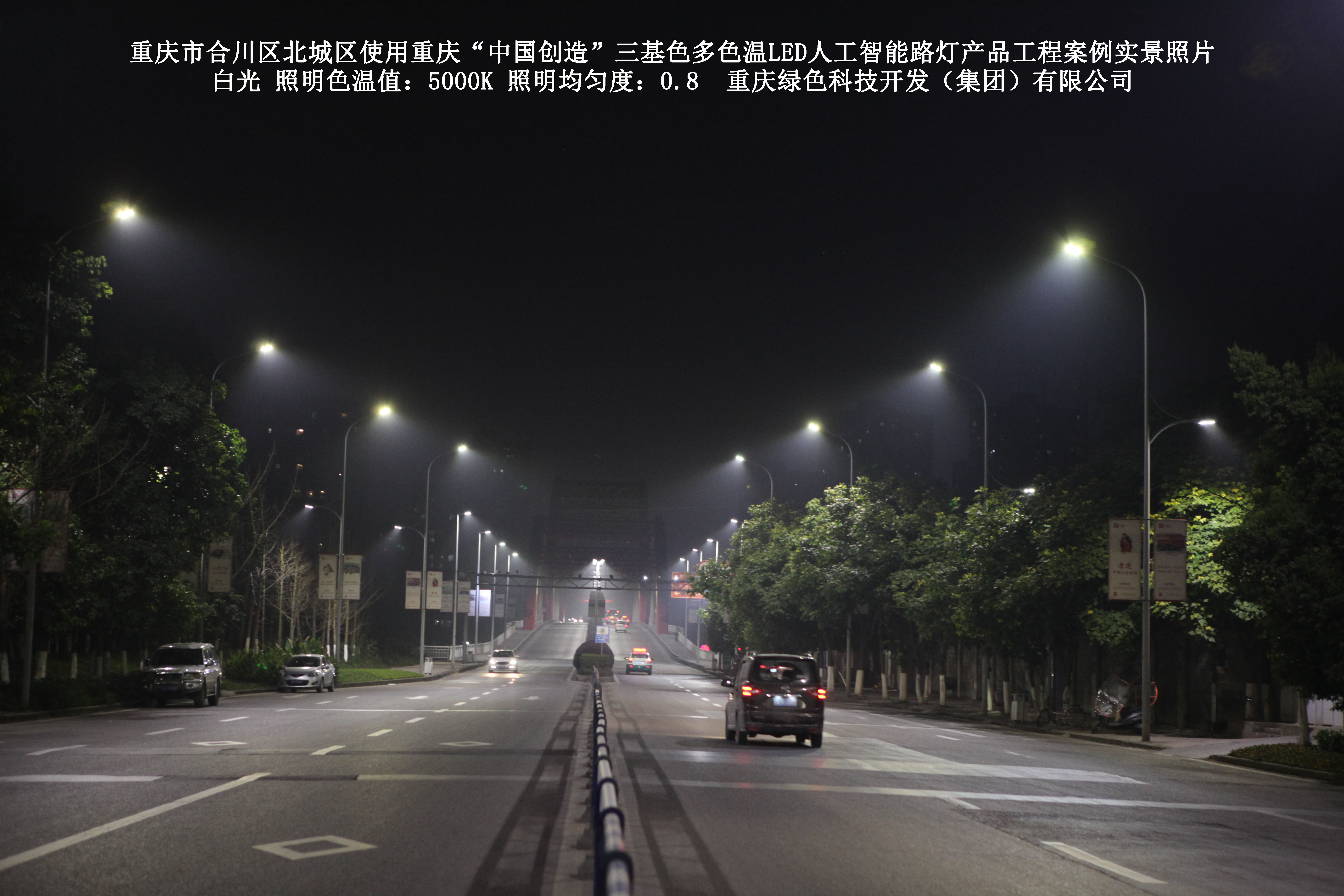 2019年1月,重慶市合川區(qū)城市管理局使用了我司研發(fā)制造的重慶“中國創(chuàng)造”三基色多色溫LED人工智能路燈5144盞,對合川區(qū)北城區(qū)實施了綠色照明科技節(jié)能改造工程,該工程已全面竣工。工程實施后,極大地提高了合川區(qū)北城區(qū)城市照明清晰度、燈光均勻度、舒適度。通過智能終端實現(xiàn)單燈感知、線纜防盜報警,與原高壓鈉燈相比,節(jié)能率60%以上,有效解決了關閉控制回路或間隔關燈方式造成的照明暗區(qū),確保行人和車輛通行的安全,實現(xiàn)城市路燈照明系統(tǒng)的智能化管理,推進了智慧城市建設。